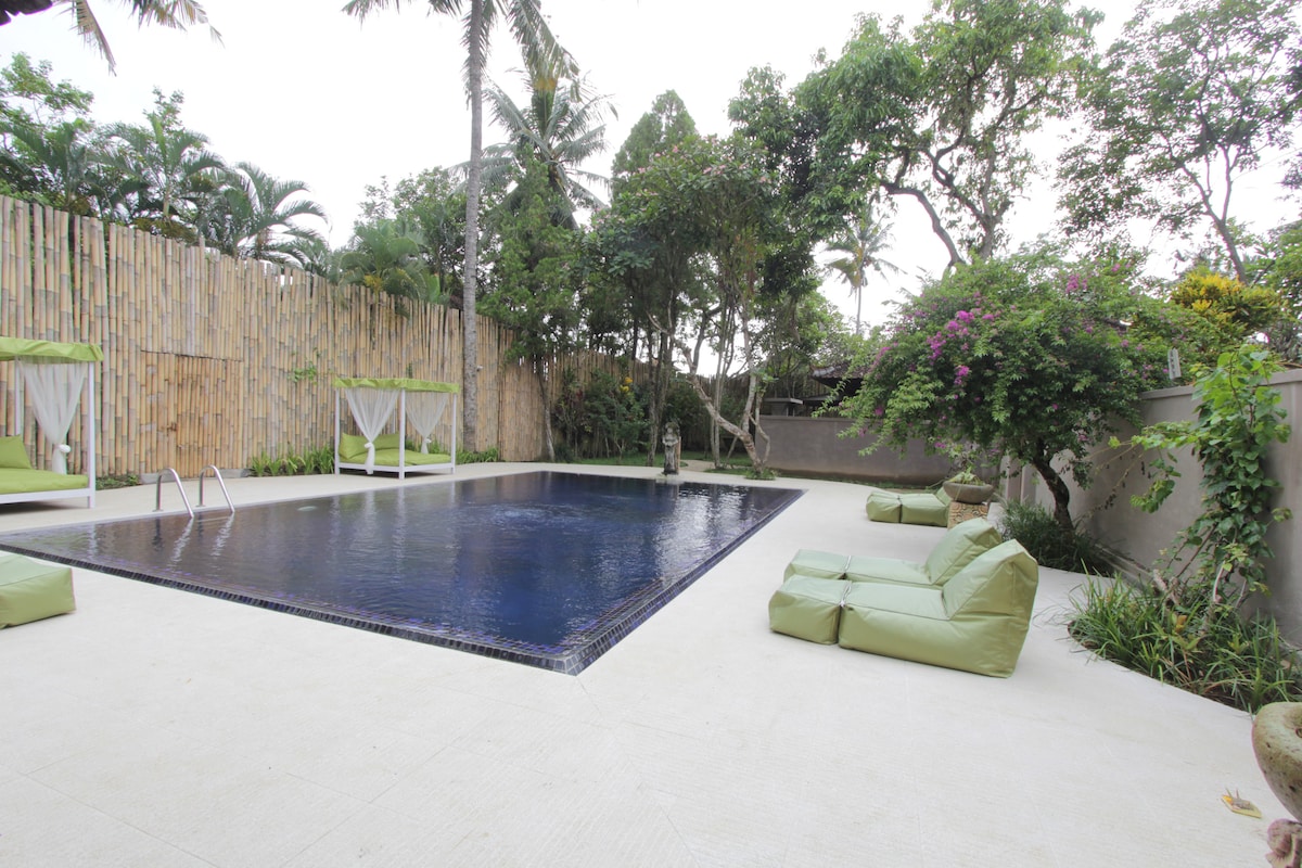 Fáilte go Villa Dwipa ☀️ Áit inar féidir leat tú féin a spreagadh in áilleacht agus i só Villa Bambú atá go hiomlán príobháideach agus na háiseanna go léir atá ann timpeallaithe ag an dúlra síochánta 🍃 Idir thumadh sa linn snámha phríobháideach, féachaint ar scannán ar scáileán na pictiúrlainne anuas agus cóisir gan chomharsa a bheith agat sa seomra suí agus am ar ardchaighdeán síochánta a chaitheamh, scíth a ligean go comhuaineach ar an mbalcóin agus gach rud idir eatarthu, cibé acu cairde nó daoine a bhfuil dúil agat ann, ráthaímid am maith duit 😊