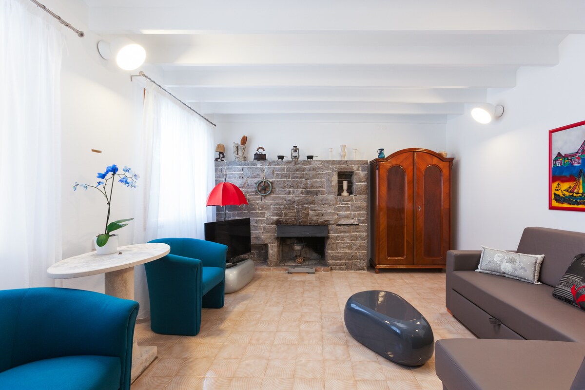 Tá ár dteach beag álainn suite i ngarrán olóige. Tá sé sorrunded ag tírdhreach álainn beautliful Adriatic. Soláthraíonn na sléibhte go leor siúlóidí amach agus rianta rothar. Tá na tránna agus na feiceáil 5 nóiméad de thiomáint ar shiúl. Mar sin, is iad na príomhthréithe an tí an radharc iontach, an tsíocháin agus an leithlisiú. Tá cuma thuathúil shimplí ar an spás ionas go mothóidh tú go bhfuil tú sa bhaile.