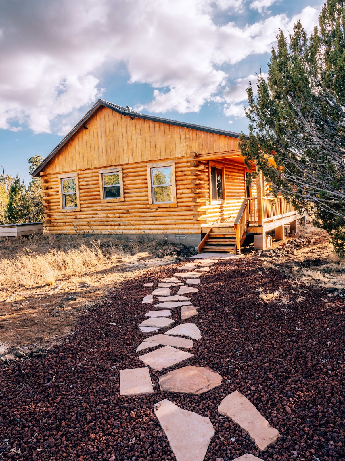 Tá ár gcábán ar 1 acra de thalamh fálaithe i bPáirceanna, AZ agus tá an teaghlach faoi úinéireacht & á oibriú. Tá sé uathúil, mar tá sé ag críochantacht le foraois náisiúnta i gcul - de - sac. Tá sé thart ar 4 mhíle siar ó thuaidh ó I -40 & Rt 66, rud a fhágann gur suíomh ciúin é ar shiúl ón traein & torann saorbhealaigh. Tá thart ar 1500 cónaitheoir i bpáirceanna agus tá siad idir Flagstaff & Williams. Níl an Grand Canyon ach uair an chloig ó thuaidh ó Williams chomh maith. Adhmad dóiteáin san áireamh le haghaidh sorn adhmaid agus poll dóiteáin lasmuigh.