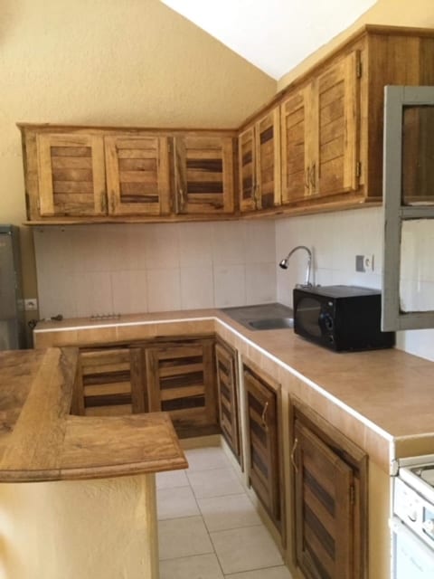 Teach atá feistithe go hiomlán le haer, atá suite i gceantar ciúin 500m ón trá. Comhdhéanta de chistin , 2 sheomra leapa atá feistithe lena seomraí folctha féin; gairdín ina bhfuil crainn torthaí ( banana , grapefruit agus líomóid) agus linn snámha. Cuir táillí ídithe leictreachais, gáis agus uisce (méadar réamhíoctha) ar fáil mura n - úsáidtear an linn snámha le haghaidh fuinneamh na gréine. Cinntíonn ár bhfeighlí a gcosaint. Teach leathscoite