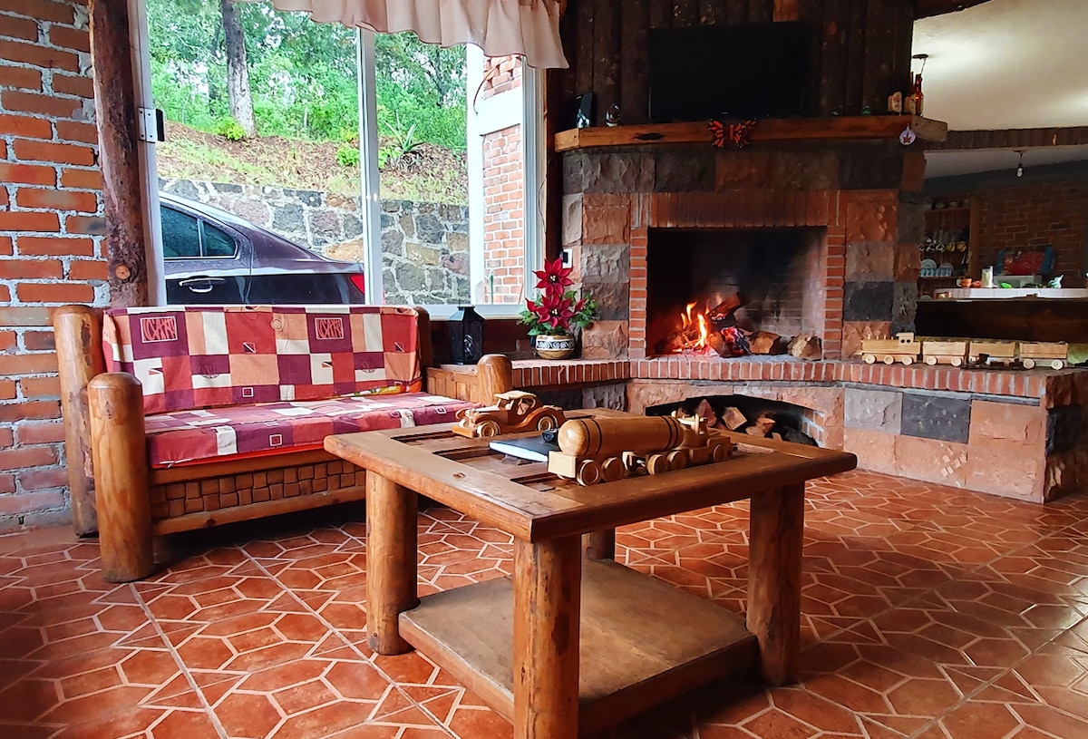 Teachín iontach sa choill ina bhfuil saoráidí iontacha: * Gairdín mór de 1000 m² le plandaí ornáideacha agus crainn torthaí. * Seomra bia lasmuigh le beárbaiciú gualaigh, teallach dóite adhmaid, agus cluichí do pháistí. * Seomra suí lasmuigh le tine gháis ag breathnú amach ar Dhamba Brockman. * Díon jacuzzi timpeallaithe ag glaise. * Seomra cluichí le bord linn snámha agus haca aeir. * Díreach 20 nóiméad ó Tlalpujahua agus 8 ó El Oro i gcarr.