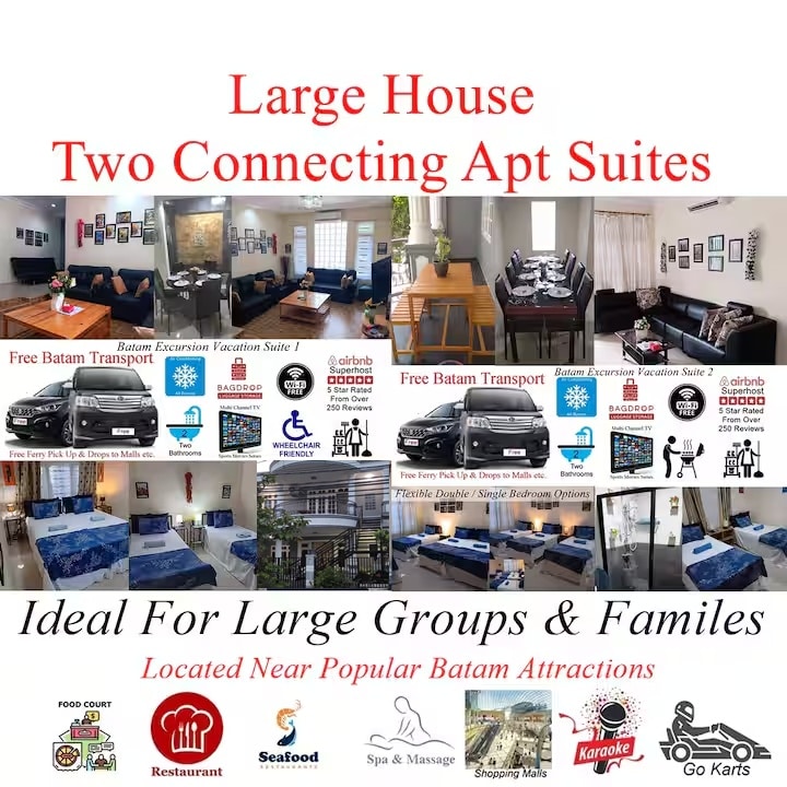 Cuireann Bali Bliss Villa lóistín cluthar agus scíth a ligean ar fáil in Batam. Tá sé láraithe i go leor príomhréimsí, thart ar 10 go 15 nóiméad go críochfort Sekupang/Nongsa, aerfort, Meall Nagoya & thart ar 23 nóiméad go críochfort Batam ctr. Cuireann an Villa 3 sheomra leapa fairsinge ar fáil ina bhfuil linn snámha phríobháideach, ardán, saoráidí cistine Wi - Fi saor in aisce agus poll beárbaiciú. Tá seirbhís suathaireachta agus iompar ón gcríochfort nó ó thuras lae ar fáil ar ráta maith. Tar agus faigh blaiseadh de stíl scíthe Bali agus éalaigh ón saol gnóthach uirbeach.