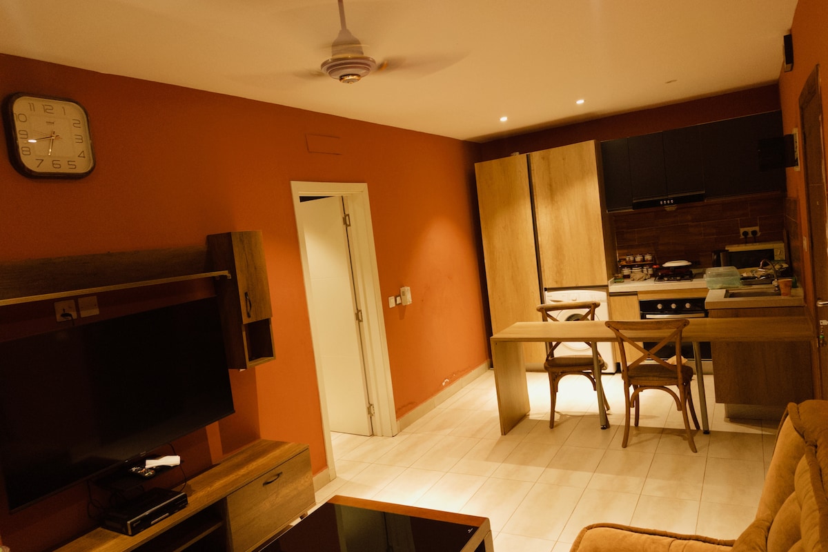 Tá mé Ahmed, agus in éineacht le mo bhean chéile Safia, ba bhreá linn dá mbeifeá i do chónaí inár dteach só 2 sheomra leapa in Árasáin Radharc Foraoise nua - chríochnaithe - neadaithe sa suíomh is fearr in The Gambia ar phraghas cothrom. Cuirimid árasán iomlán 62sqm ar fáil ina bhfuil linn snámha a bhfuil dea - bhail air, slándáil 24/7, atá suite ar stiall fhaiseanta Senegambia in Kololi. Tá ár stíl dearaidh íostach, nua - aimseartha, geal agus praiticiúil.