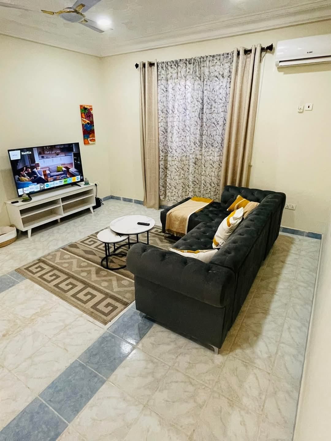 Árasán fairsing só dhá sheomra leapa in Kerr - Serign . An teach iomlán duit féin.Few minutes drive or walking distance to Senegambia beach, restaurant and clubs.Furnished to a high standard.Living room with a air conditioner and two ceiling fans, an open plan kitchen with dining area.En - suite bedroom with ceiling fan and air conditioner and second bedroom with ceiling Fan.Please note room price does not include electricity .Uage will be charged separate depending on your consumption.Many thanks