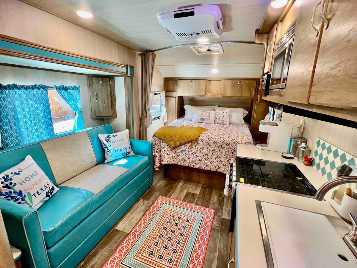 Téigh ar shaoire go dtí d’áit tearmainn phríobháideach féachaint ar na réaltaí i Texas Hill Country! Meascann an cruinneachán sómasach seo compord nua-aimseartha le tumadh sa dúlra — foirfe do lánúineacha, d'ócáidí speisialta, nó d'aon duine a bhfuil dúil mhór aige nó aici san spéir mhór agus i radhairc shuaimhneacha. Suite ar 17 n-acra atá díolmhaithe ó AG in aice le lochanna, fíonlanna, grúdlanna, páirceanna, ionaid bhainise agus cearnóga stairiúla i dTeacsas. Tá an t - eispéireas uathúil seo ar an liosta buicéid cinnte go gcuirfidh sé suaimhneas agus ciúnas ar fáil, agus tá só galánta ag baint leo ar fad.