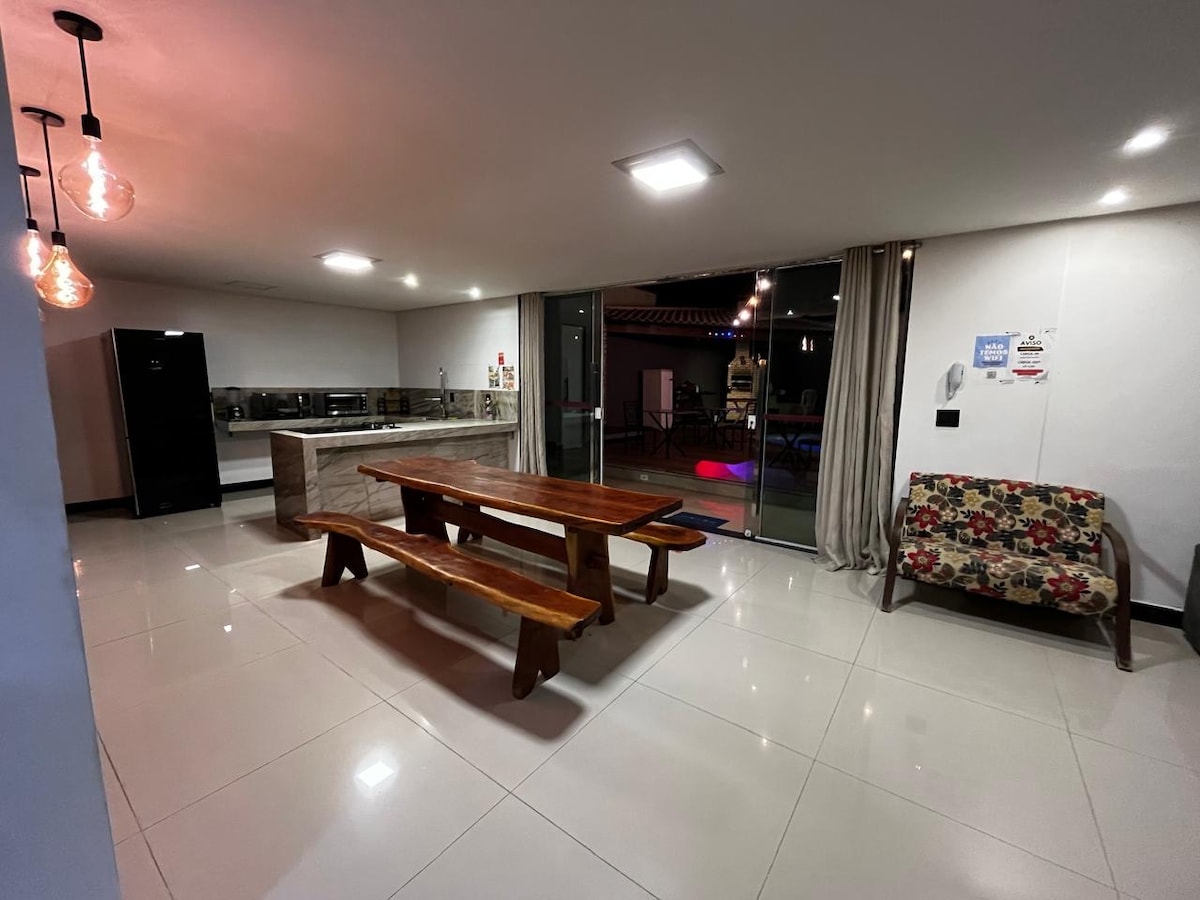 600 méadar ón trá, bíodh sé de phléisiúr agat fanacht in áit chluthar chiúin fiú i rith an lae chun do scíth a ligean, ach tá cúpla nóiméad agat ón teach an - áthas agus fuadar tránna Jacaraípe. Linn snámha, deic, limistéar gourmet le beárbaiciú, casóg ar an mbalcóin an t - aoi ar fad. Tá 43 orlach Smart - Tv ceangailte leis an idirlíon. Tá 3 sheomra leapa ann: 2 sheomra leapa dúbailte agus 1 leaba shingil. [CUIR síos LEIAM le do thoil: "O ESPAÇO" e "OUTRAS OBSERVAÇES ". Agus freagair do cheisteanna sula ndéanann tú áirithint, ar mhaithe le do chompord.