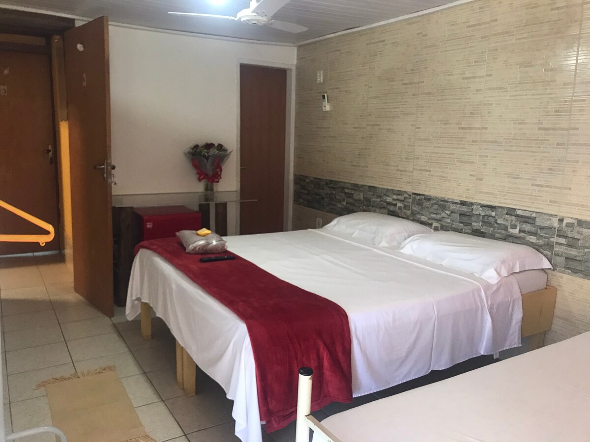 Pousada com 10 suítes, que acomoda até 27 pessoas no total, temos quartos para casal, triplo e quádruplo. Fica a uma rua do mar. O bairro é tranquilo. Os quartos possuem ar condicionado, banheiro privativo, Tv, frigobar.