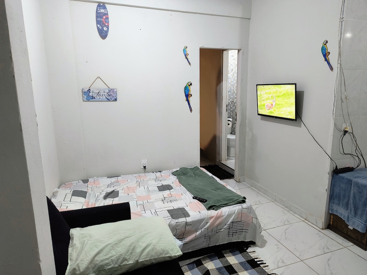 Árasán ar fad atá feistithe le haghaidh lóistín i gcompord iomlán. Tá an árasán an - chónaithe, ciúin, tá clós súgartha do pháistí, concierge 24h, gairdín, bainc agus a mhargadh féin ann. Tá sé suite i gcroílár Jardim Camburi, 900m ón trá agus leis na hacmhainní go léir timpeall: Ospidéal, stad bus, cógaslann, margadh, bialanna, giomnáisiam agus cearnóg le truicéirí bia. *LÉIGH AN LIOSTÚ IOMLÁN AGUS FAIGH D'AMHRAS SULA NDÉANFAIDH TÚ ÁIRITHINT* Seiceáil Isteach agus Seiceáil Amach Solúbtha (Nuair a bheidh sé ar fáil)