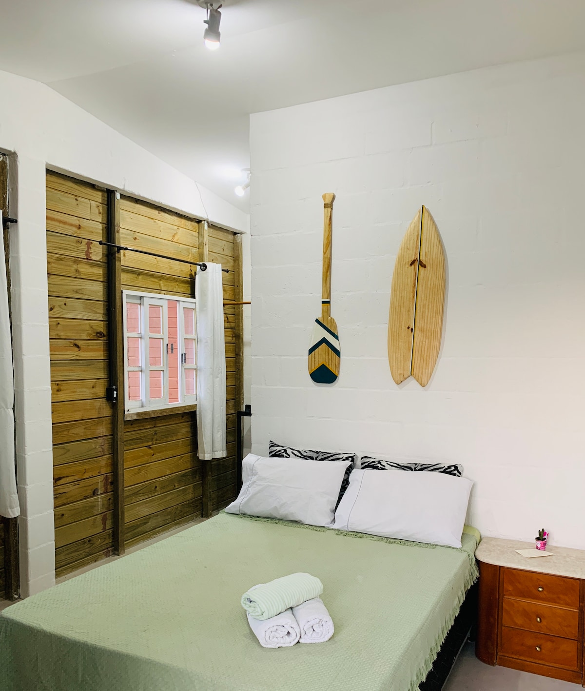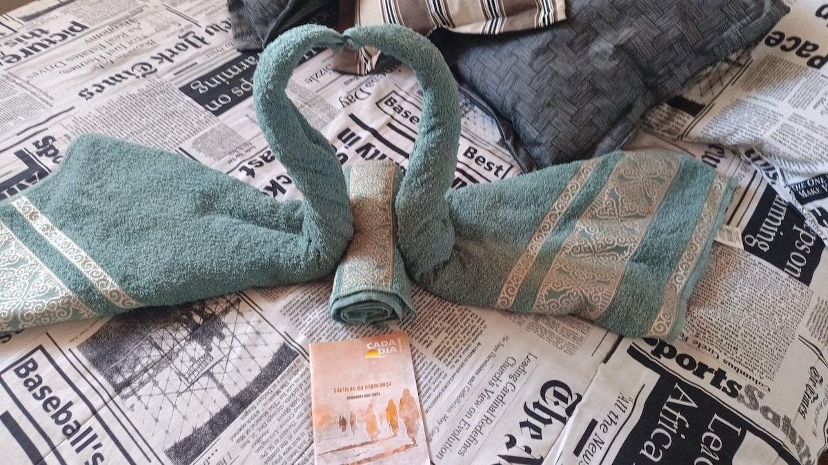 Óstáil tú féin i gcúlchlós atá lán le féidearthachtaí. Éist leis na héin, luigh ar an líon, féach ar an iasc sa loch, ullmhaigh beárbaiciú, bain sult as marshmallow sa teallach iontach go deimhin, go háirithe do na páistí a bhfuil cabanets agus bréagáin atá cairdiúil don chomhshaol acu sa seomra fiú. Don lánúin, cuirimid dinnéar álainn rómánsúil (cuid) ar fáil! Táimid gar do thrá Jacaraípe (3 nóiméad), do shráidbhailte dúchasacha Aracruz (40 nóiméad) agus d'ailtireacht agus do chócaireacht álainn na hIodáile in Santa Tereza (1:20h).