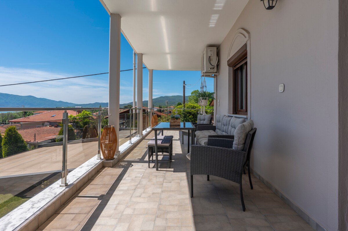 Teach compordach geal atá foirfe do theaghlaigh, do lánúineacha nó do ghrúpaí cairde, agus atá foirfe chun scíth a ligean tar éis lá ag an trá. Tá sé suite achar gairid ar shiúl—3 nóiméad ar shiúl na gcos—ón bhfarraige, i gceantar ciúin atá timpeallaithe ag crainn agus ag an dúlra. Níl Asprovalta, atá foirfe do spaisteoireacht tráthnóna, ach 10 nóiméad ar shiúl, agus níl tránna Kavala ach 15 nóiméad ar shiúl. Tá clós príobháideach ag an réadmhaoin ina bhfuil spás páirceála agus gairdín ina bhfuil crainn agus plandaí. Baineann aíonna taitneamh as rochtain leanúnach ar an idirlíon tapa freisin