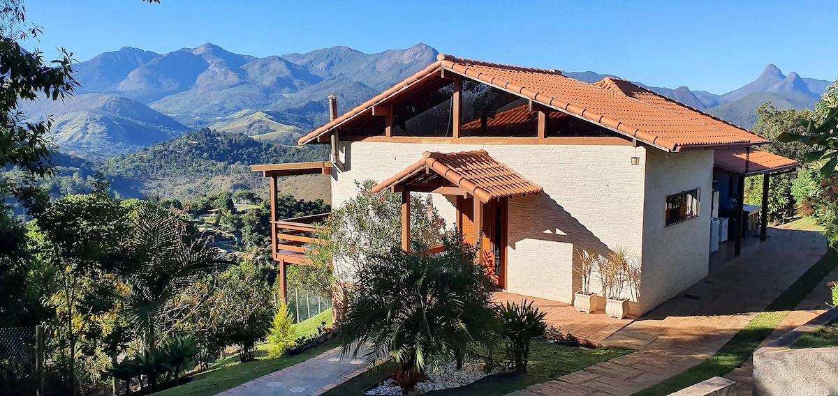 Teach ag breathnú amach ar na sléibhte in Itaipava