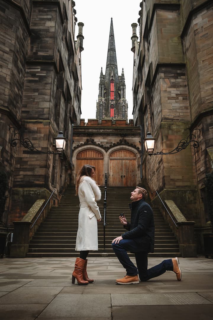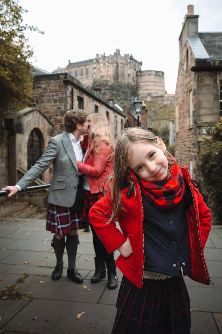 Fótagrafaíocht a dhéanamh ar lánúineacha, ar theaghlaigh agus ar thaistealaithe aonair i Seanbhaile Dhún Éideann.