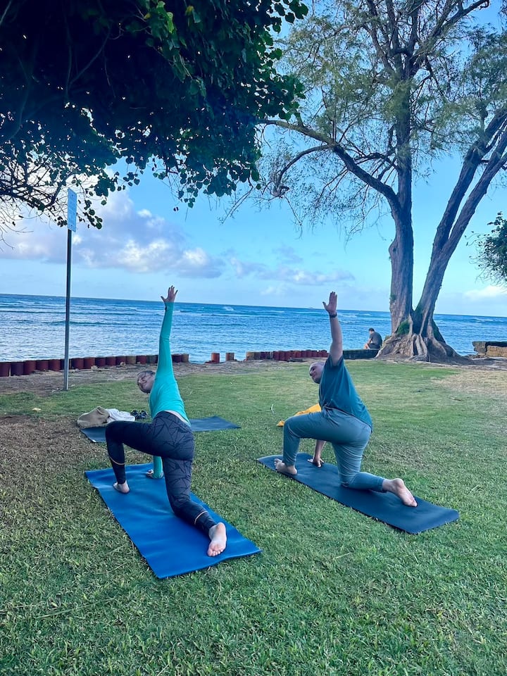 Chomh maith le stiúideonna agus 1 - ar -1, múinim rang pobail seachtainiúil agLē'ahi Beach Park.