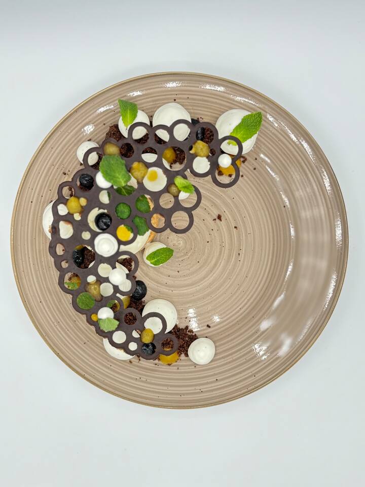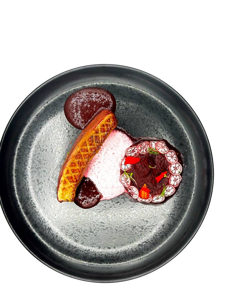 Tá sé mar aidhm ag gach mias sa tairiscint seo aíonna a chur ar a suaimhneas go bhfuil siad i mbialann le réalta Michelin gan dul ann i ndáiríre.