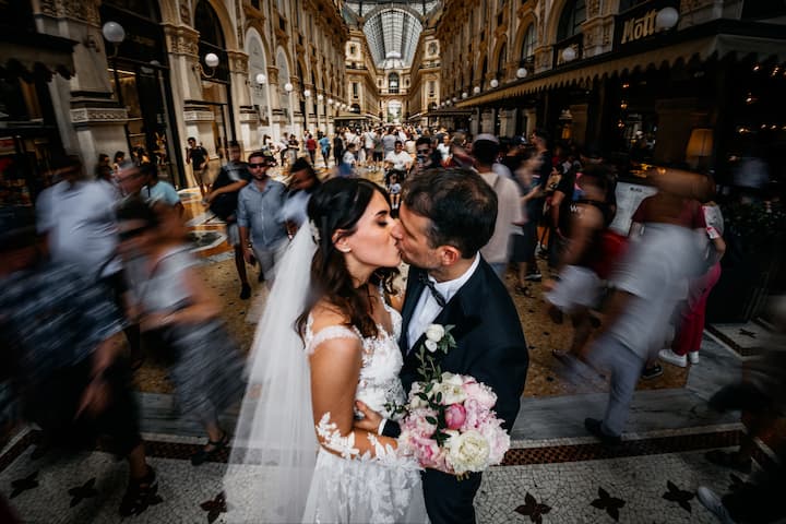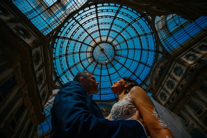 Grianghrafadóireacht in áiteanna stairiúla i Milano, lena n - áirítear Piazza Duomo agus Parco Sempione.