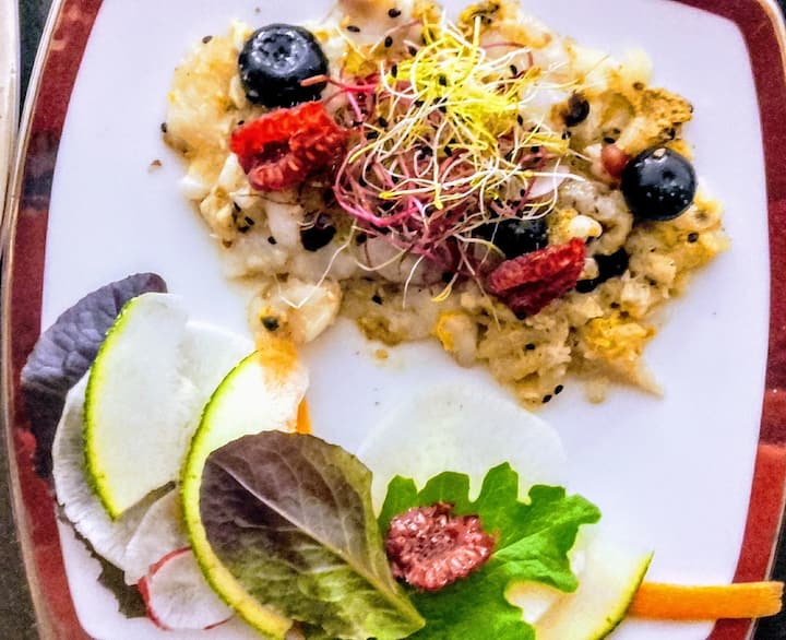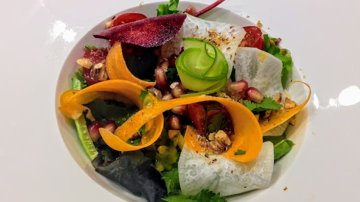 Turas iontach ag baint úsáid as blasanna sláintiúla agus cumaisc. Bain sult as glasraí séasúracha, soithí atá cócaráilte go mall, agus marinades a sheasann amach.