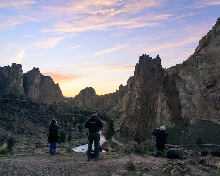 Bain sult as turas fánaíochta agus seisiún grianghrafadóireachta ag Smith Rock, ag siúl ar chuid de na conairí is áille sa pháirc.
