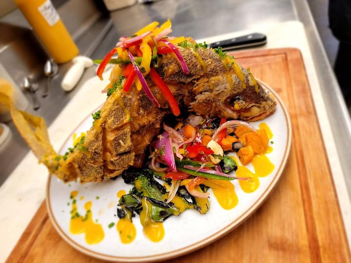 Cuireann an cócaire David eispéiris itheacháin chósta phearsanta ar fáil le bia mara a fhaightear go háitiúil agus a mheascann anam an Deiscirt le só ardaithe siar.