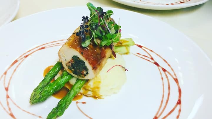 Bain sult as eispéireas bia sómasach ina bhfuil béile ilchúrsa ina bhfuil na comhábhair is fearr.