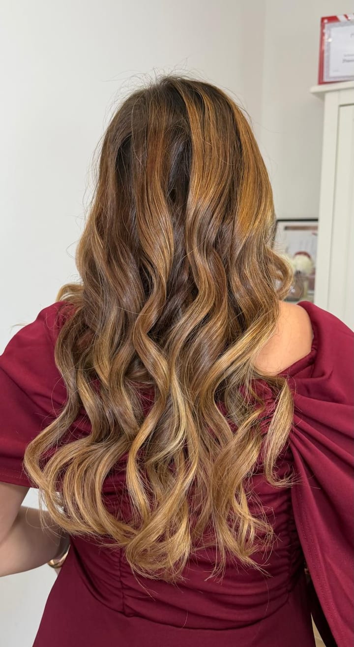 Seirbhís stíleála tonnta nó tonnta sa bhaile, le haghaidh gruaig lonrach agus stíl a sheasann an fód ar feadh an lae.