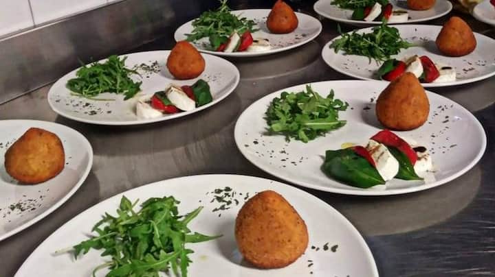 Béile traidisiúnta na hIodáile 10 gcúrsa - idir antipasti agus dolci. Tá 4 bhia, 2 chéad chúrsa, 2 phríomhchúrsa, agus 2 mhilseog san áireamh.