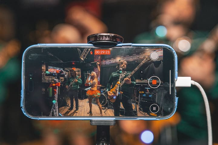 Gabháil físeáin d'agallamh/ imeacht/seó beo/ cur i láthair/cruinniú grúpa/ ceiliúradh/físeán ceoil