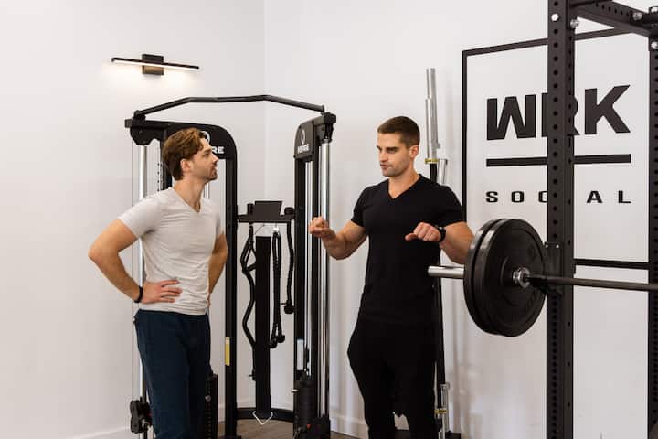 Is lúthchleasaí mé a chuir oiliúint ar chliaint ag ionaid aclaíochta móra ar nós Equinox agus LA Fitness.