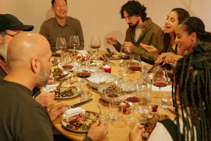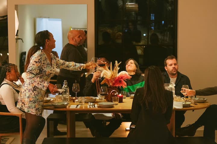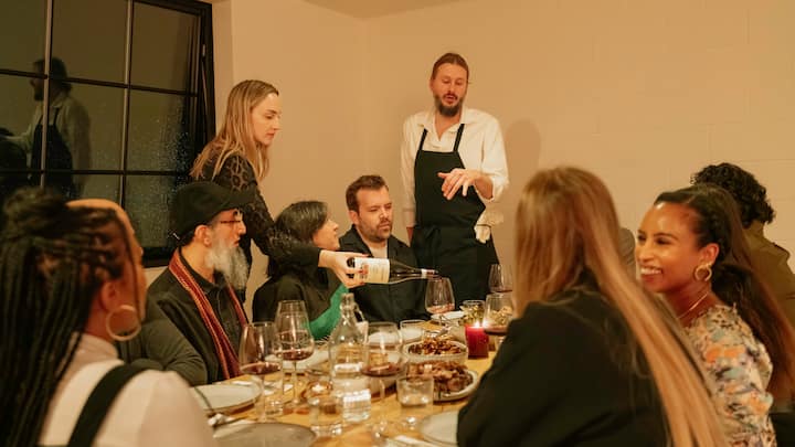 Sábháil dinnéar agus milseog le canapés agus péireálacha dí.