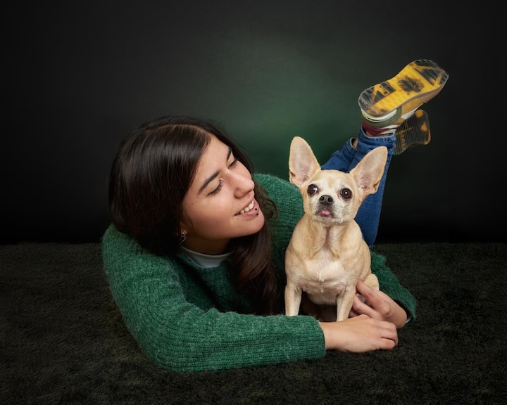 Seisiúin grianghrafadóireachta lasmuigh nó stiúideo chun pearsantacht do pheata a ghabháil.