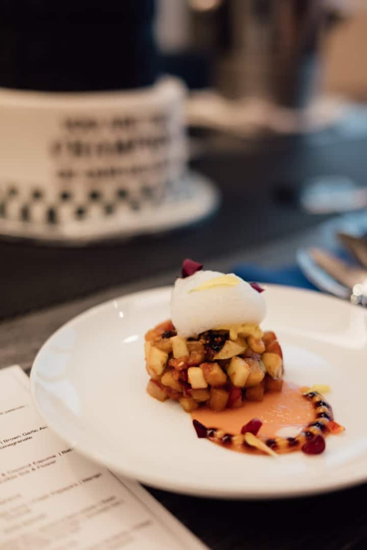 Is turas breá bia cruthaitheach é biachlár an tséasúir seo le hainmneacha miasa spraíúla agus blasanna scagtha. Tarraingíonn sé aird ar chomhábhair shómasach amhail foie gras, muiríní Hokkaido, iasc trosc, portán, agus lacha dheataithe, gach ceann acu péireáilte le gnéithe gan choinne amhail gas masala banana, asam pedas velouté, agus rís muisiriún pecorino. Críochnaíonn an t - eispéireas ar nóta milis le milseog piorraí atá ceangailte le cainéal agus atá spreagtha ag compord clasaiceach.