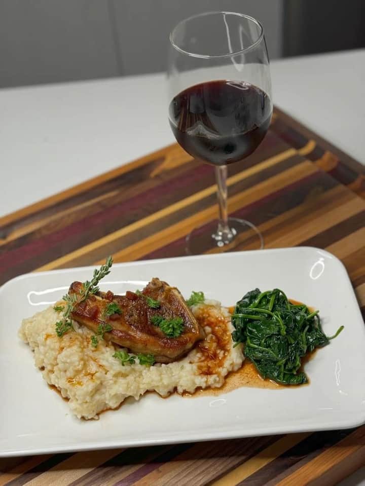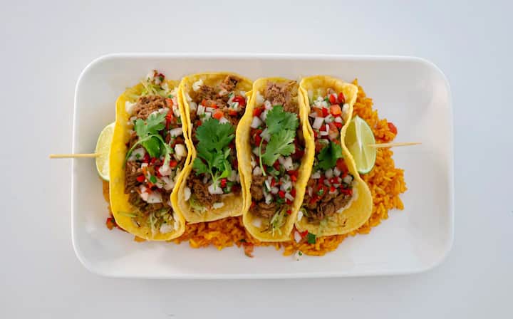 Oscail le tacos mairteola mallchócaráilte tairisceana le chilies Fresno picilte, cilantro úr, agus cáis Oaxaca le haghaidh pléasctha bríomhar blas. Bain sult as príomhphíobán anamúil de shicín friochta órga in éineacht le yams gloinithe meala veilbhitiúil, glasraí collard braised, arán arbhair buttery, agus macaróin agus cáis shaibhir, bhácáilte. Críochnaigh le bailchríoch dhochoiscthe ag baint leis — uachtar reoite cáca cáise sútha talún briosc — friochta - pósadh díchéillí compoird agus sóláis.