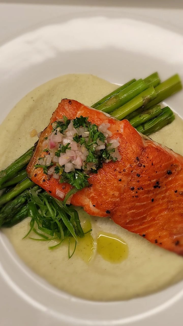 Tosaigh le greimeanna cucamar séacla ar stíl Théalannach, bog isteach i mbradán úr íogair ar a bhfuil salsa lemongrass cumhra agus purée fréimhe peirsil taobh le hasparagus tairisceana, agus críochnaigh le crème anglaise silky crème anglaise corónach le caibheár torthaí cosúil le seod — turas bríomhar ar an bhfarraige de bhlas ó thús go deireadh