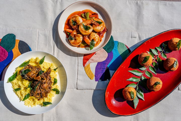 Is mósáic bheoga de bhlasanna, de dhathanna agus d'uigeachtaí é béile ríse agus curaí Shrí Lanca, atá fréamhaithe go domhain san oidhreacht agus san fháilteachas. Ag a chroílár tá dumha ríse Basmati cumhra, agus curaí Veg & Non Veg ina thaobh.