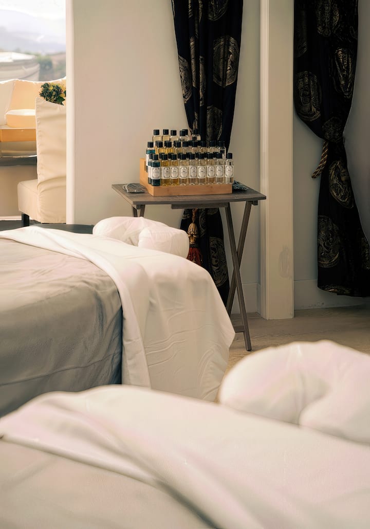 Níl do shaoire iomlán gan scíth a ligean le chéile. Ligigí bhur scíth le chéile le huair an chloig iomlán de shuaimhneas saincheaptha sa seomra—roghnaígí seisiúin i ndiaidh a chéile nó iarrigí beirt theiripeoirí le haghaidh suathaireacht taobh le taobh. An chóir fhoirfe do bheirt.