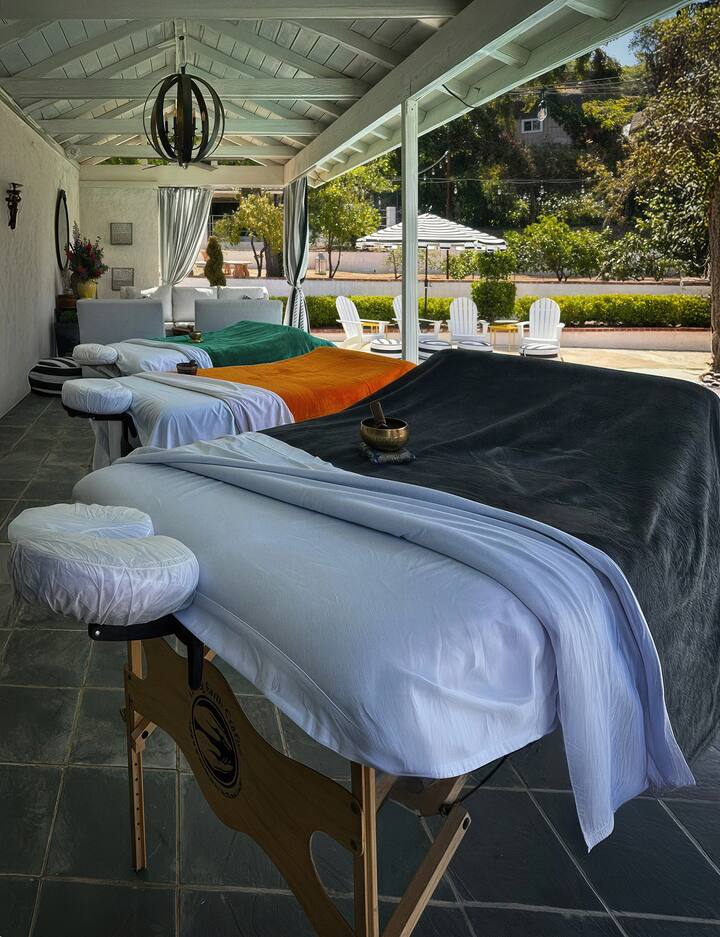 Tabhair an spá chuig do lóistín saoire ar cíos! Baineann gach aoi taitneamh as suathaireacht shaincheaptha iomlán 1 uair an chloig. Foirfe do ghrúpaí de 8. Cuirimid 2 theiripeoir ar fáil mar réamhshocrú le haghaidh sreabhadh réidh éifeachtúil—tá teiripeoirí breise ar fáil ach iad a iarraidh. Folláine, seachadta.