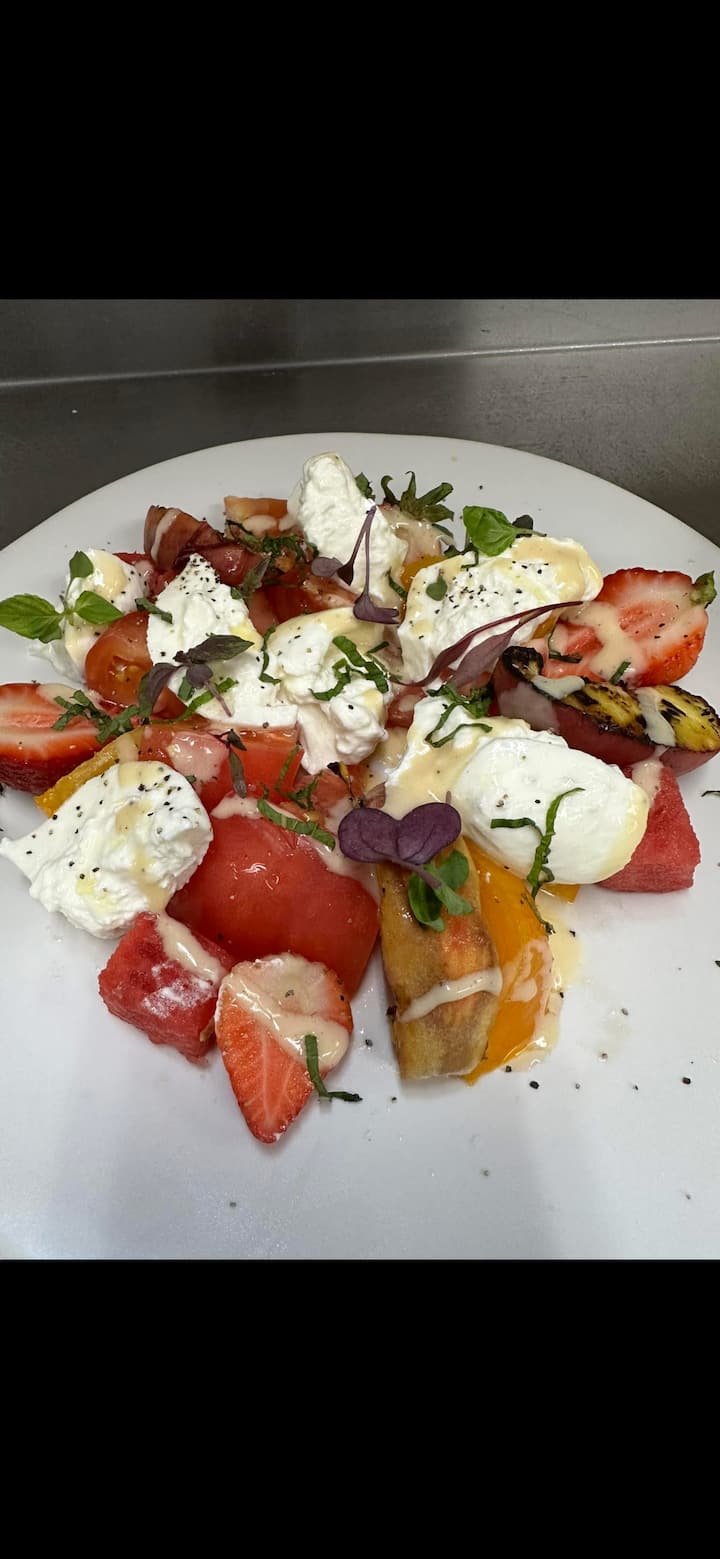 Bain sult as eispéireas iomlán Iodálach le sailléid úra Caesar agus burrata, bruschetta tráidisiúnta trátaí, éagsúlacht príomhbhia lena n-áirítear arán gairleoige, linguine le breallaigh, rigatoni Bolognese, agus broccolini almondine, agus ina dhiaidh sin milseog thraidisiúnta tiramisu.