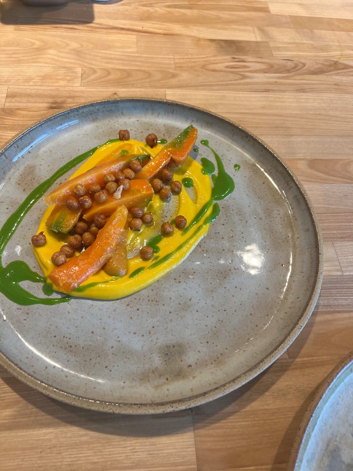-Sailéad mionghearrtha, glasraí áitiúla, oinniún agus cairéad picilte, peacáin tóstáilte, vineagrad luibheanna/seaimpéin