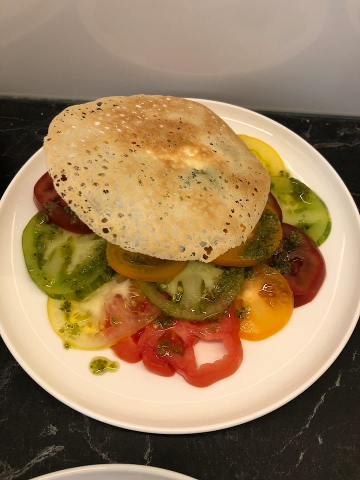 Ochtapas griollta, purée cóilis rósta, anlann Téalannach.