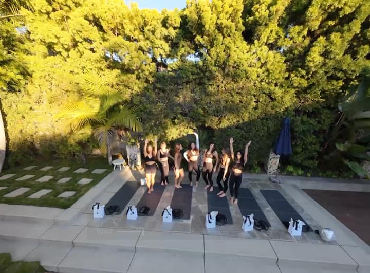Tugaimid an aclaíocht chugat - pé áit a bhfuil tú ag fanacht nó ag stiúideo in aice láimhe. Déantar gach seisiún a shaincheapadh go hiomlán chun teacht le hatmaisféar, fuinneamh agus spriocanna do ghrúpa. Cibé acu Pilates roimh lá eachtraíochta, bál ceiliúrtha roimh phósadh, nó síneadh dírithe ar théarnamh tar éis taistil, cruthaímid eispéireas nach ndéanfar dearmad air ina gcomhtháthú gluaiseacht, ceol, agus folláine shómasach.