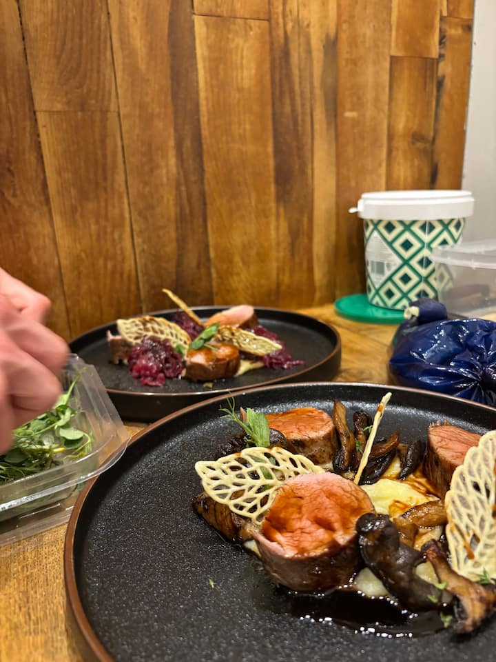 Tá trí chúrsa sa bhiachlár, mearbhall sailleach de ghearrthacha fuara áitiúla agus cáiseanna le mil agus compóidí, burrata agus mozzarella buabhall. Ina dhiaidh sin beidh carbónára leathmhuinchille le bagún briosc, agus mar chríoch beidh cáca seacláide compordach á riar le reo fanaile agus brúitín goinbhlasta