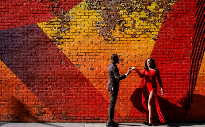 Faigh cúnamh le stíleáil gruaige agus smididh sula mbuailfidh sibh le chéile ag suíomh réamhroghnaithe. Tabhair cuairt ar go leor áiteanna i gCathair Nua-Eabhrac don dreas fótagrafaíochta seo. Freastal ar chruinniú roghnúcháin pearsanta sula bhfaighidh tú 7 n-íomhá leasaithe.