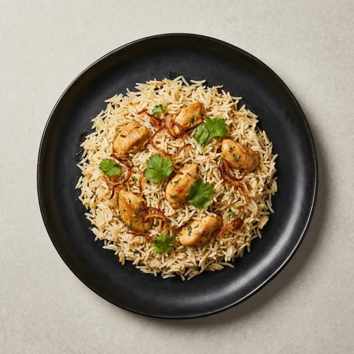 Miasa ríse baile croíúla le briogúin ghríoscáilte agus milseog éadrom