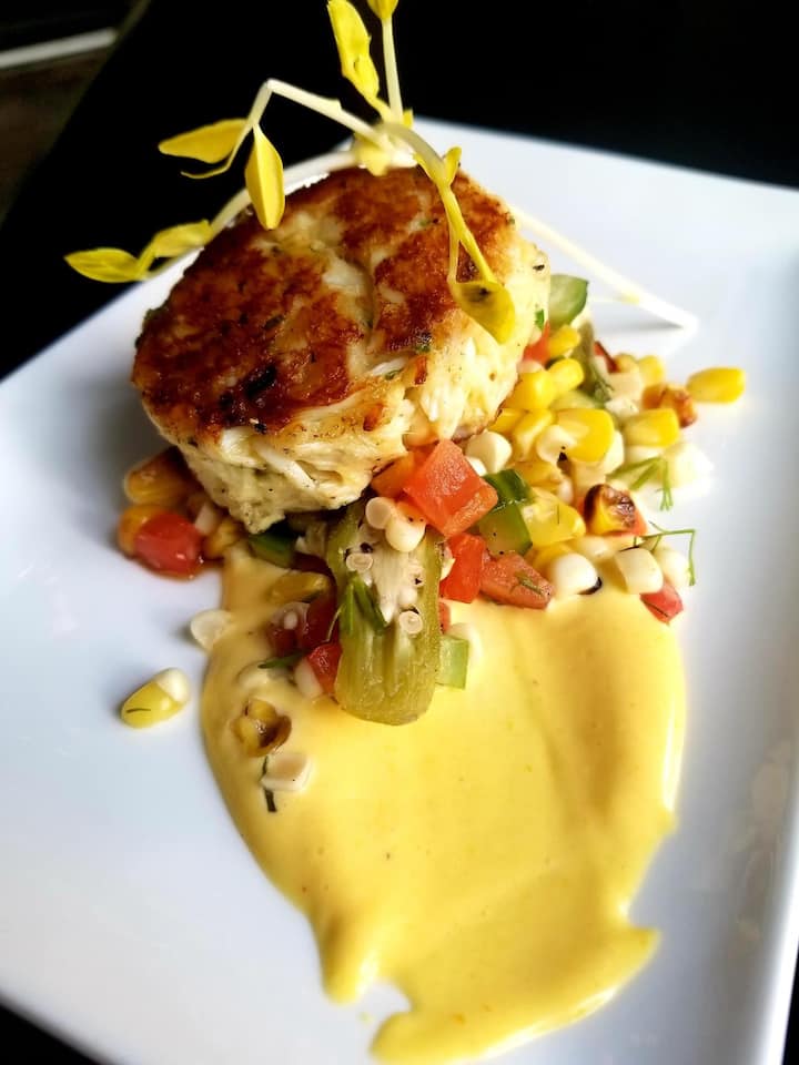 Portán ollmhór, anlann Aji Amarillo, arbhar milis agus anlann okra.