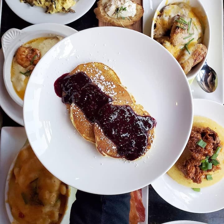 Míreanna teo (Roghnaigh Trí) Uibheacha Scrofa, Ricotta agus sibilíní le huibheacha scrofa, Bagún, Ispín, brúitíní prátaí baile, Gríoscán Cáise, Sicín agus Vaifil, brioscaí agus grámús, hais muiceola nó mairteola, uibheacha Benedict clasaiceacha.