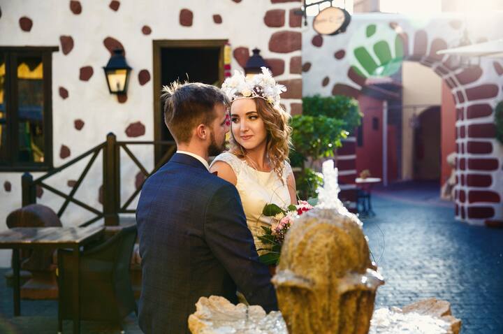 Tá na nithe seo a leanas san áireamh sa phraghas - áirse bláthanna, maisiúchán, bouquet na bríde, seaimpéin, gach tréith don searmanas (piliúr fáinne, searmanas gainimh)