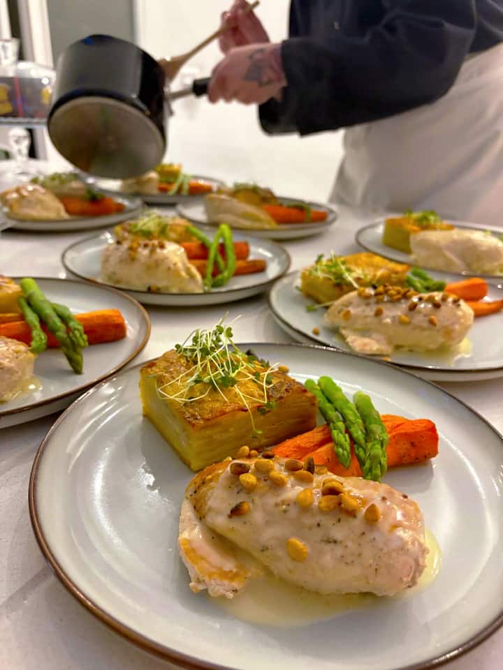 Bain sult as béile dinnéir ardleibhéil ina dtaispeántar comhábhair úra, séasúracha, áitiúla.