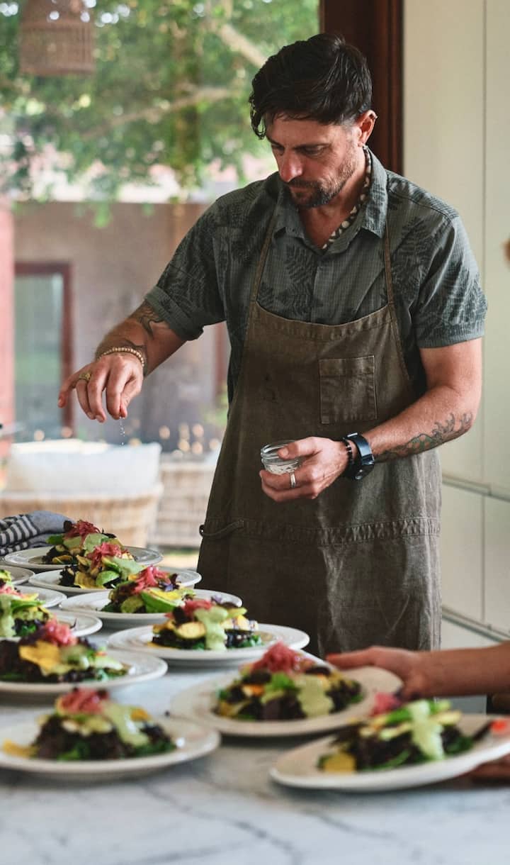 Nasc a chruthú trí chruinnithe a chuirtear le chéile go cúramach. Tá an bia a chuirim ar fáil bunaithe go mór ar ár dtáirgí áitiúla iontacha anseo i nDeisceart California.
