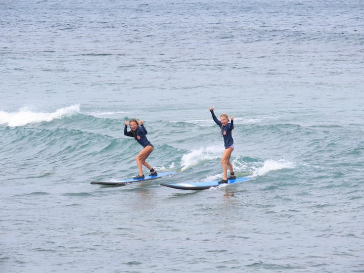 Seisiún surfála príobháideach le teagascóir tiomnaithe amháin le haghaidh traenáil phearsantaithe agus dul chun cinn níos tapúla. Foirfe do thosaitheoirí nó do surfálaithe atá ag iarraidh aird iomlán san uisce. Fad suas le 2 uair an chloig. Íosaois 10 mbliana
