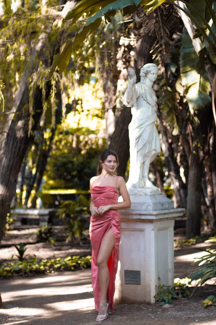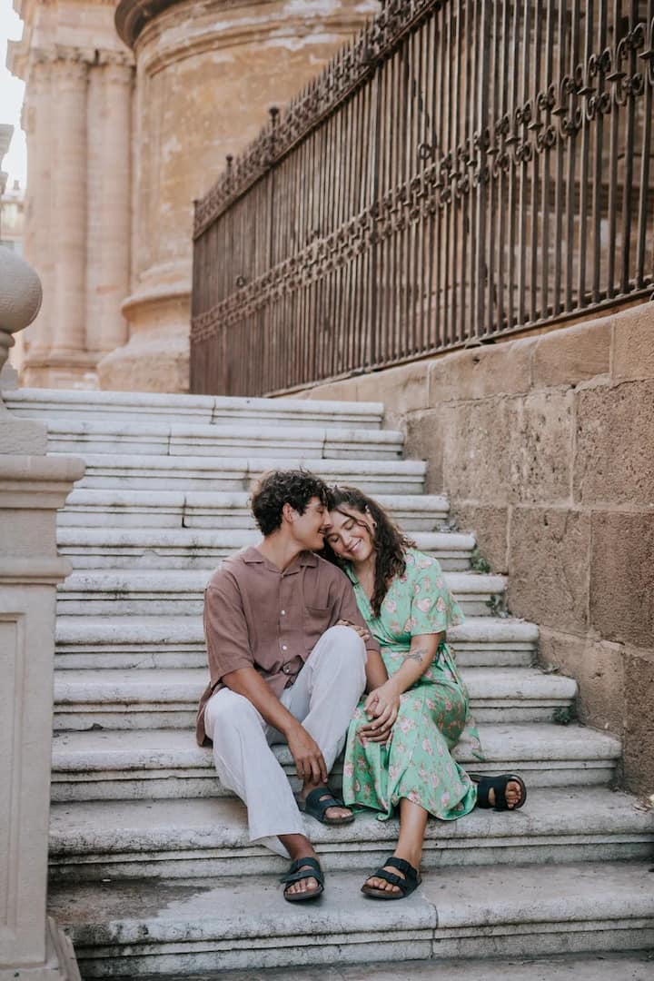 Lánúineacha ag taisteal timpeall Málaga. Grianghraif i lár an bhaile agus páirc in aice láimhe.
