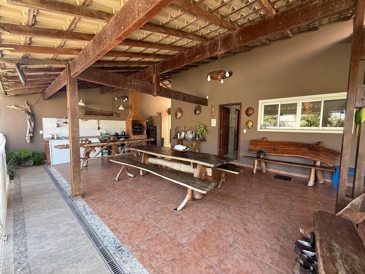 @bluehouseguarapari Ní ghlacaimid le peata 🚫 Ní chuirimid línéadach leapa ná línéadach folctha ar cíos. Tá piliúir againn. Níl an scáth fearthainne againn sa limistéar linn snámha a thuilleadh. Compord agus fóillíocht iomlán. Tá sé siúlóid 5 nóiméad ó Setiba Beach. Tá 1 svuít sa teach chomh maith le 2 sheomra leapa, 1 seomra folctha sóisialta, 1 sa seomra níocháin, 1 leithreas lasmuigh chun do chompord. Le haghaidh fóillíochta, tá beárbaiciú (níl an biorán rothlach), cuntar gourmet, linn snámha, cithfholcadán lasmuigh, bord púil agus gairdín álainn. Slándáil iomlán, fál leictreach agus aláram.